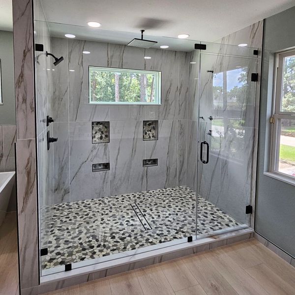 We personally fabricate and install overlay grid style doors in a variety of options to accommodate shower enclosures as well as other interior applications. All fabrication is done by our team in Houston to ensure quick lead time and turnkey service. Contact Us today for more information and your free estimate.